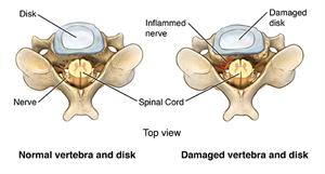 The space between your vertebrae becomes too narrow when cervical disks become damaged or worn. Part of your vertebrae or your cervical disk can press on your spinal cord or spinal nerves. This can cause you pain, numbness, or weakness. Disk surgery may be recommended when these symptoms do not respond to nonsurgical types of treatment.